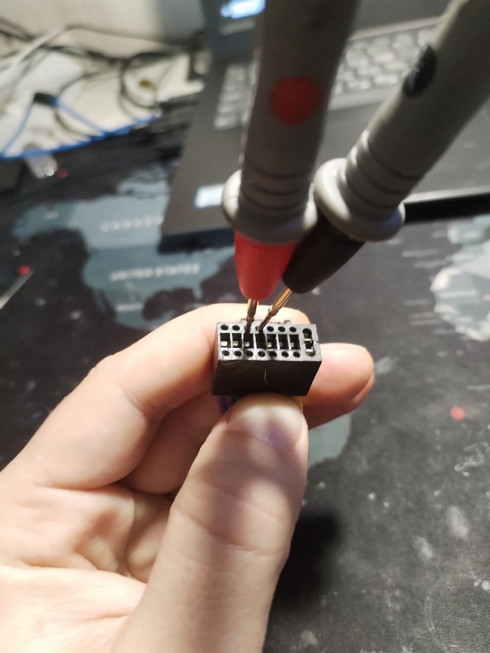 - Если показания мультиметра не меняются, независимо от того, вставлены ли щупы в разъем или нет - это обрыв.
